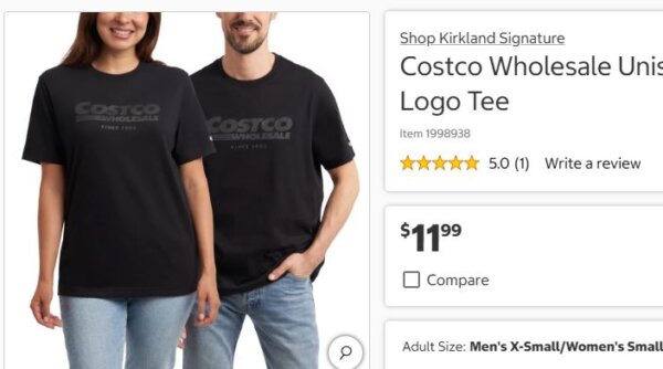 4 years ago (2022), they had Kirkland Signature logo t-shirts for $14.99. I bought two of them and they sold out fast. Now they are $11.99 each. This time, I ordered three, and one for my friend.